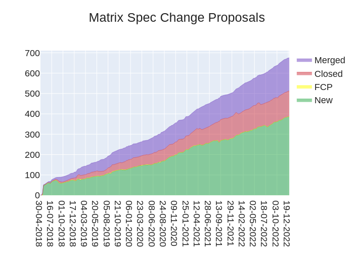 Here's your weekly spec update! The heart of Matrix is the specification - and this is modified by Matrix Spec Change (MSC) proposals. Learn more about how the process works at https://matrix.org/docs/spec/proposals.
