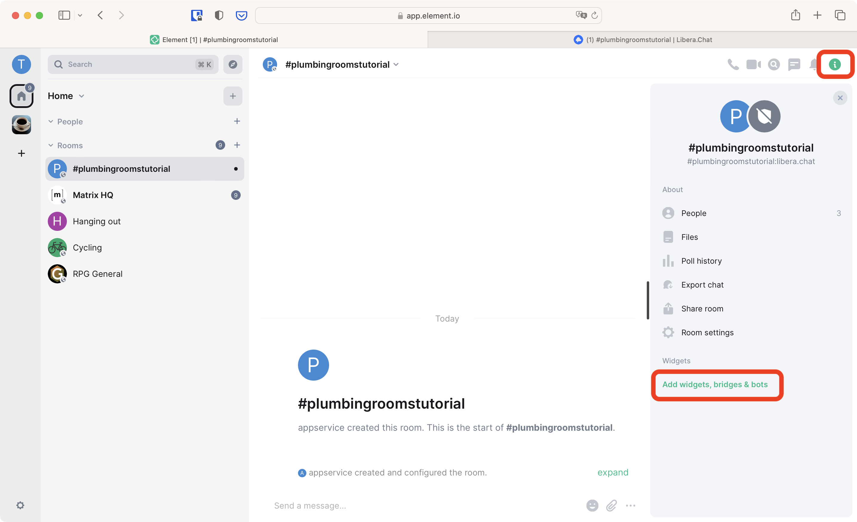 In this guide, we’ll be using Element. Open your room, then click on the top